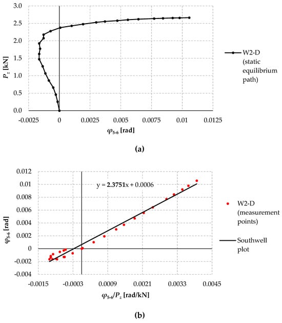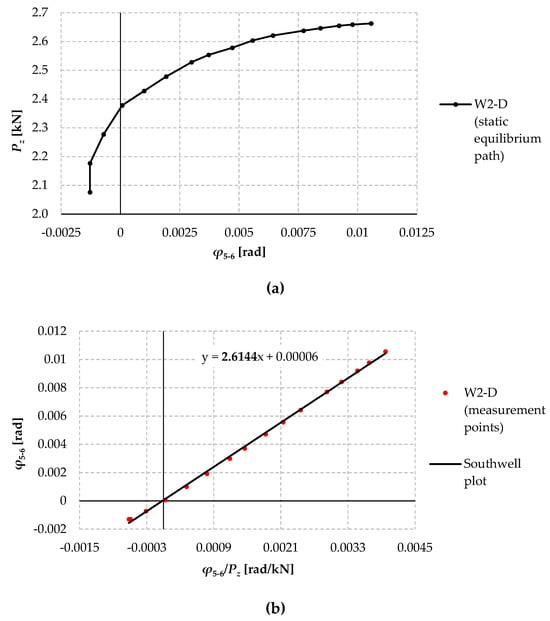 25]. Classically, the method has been used to experimentally determine the critical force of axially compressed columns possessing geometric imperfections with a near buckling form. In this case, even at relatively low loads, the form of displacement increments achieves a form close to buckling according to the first (smallest) critical load. Based on the experimentally determined load–deflection (