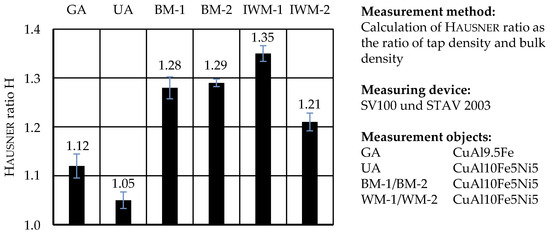 35. Grey, R.O.; Beddow, J.K. On the Hausner Ratio and Its Relationship to Some Properties of Metal Powders. Powder Technol. 1969, 2, 323–326. [Google Scholar] [CrossRef]