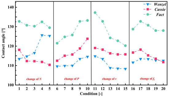 Few researchers have studied the effect of micro-texture accuracy on surface wettability. Tomáš Primus et al. [18] changed the surface wettability of Ti6Al4V alloy by using fast nanosecond laser micro-structure process, and proposed that surface elements are more important than the micro-texture morphology. A. Riveiro et al. [19] have determined the effect of CO2 laser-processing parameters on surface wetting characteristics for processing PTFE surface textures and found that tiny filaments on the surface of the weave can contribute to the enhancement of hydrophobicity. F. Peter Prakash et al. [20] have changed the processing parameters of the Nd: YAG laser, affecting the overlapping area of the laser and, thus, affecting the roughness of the texture surface, and finally improving the hydrophilicity of the C-263 based nickel superalloy surface. Jian Ma et al. [21] proposed three laser-scanning strategies to achieve sinusoidal textured surfaces and discussed the effects of surface structure and chemical composition evolution on surface wettability. Under the action of hot capillary migration, the laser-induced wetting mechanism is different from the isothermal wetting mechanism.