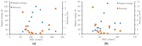 - Porosity has a significant influence on impact energy, even for samples with low porosity, and the impact energy drops abruptly as porosity increases; therefore, impact testing may be used for parameter optimization;
