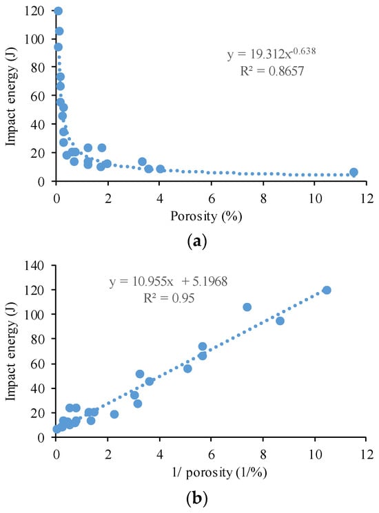 - A linear relationship between the Charpy impact energy and the inverse of porosity was found;