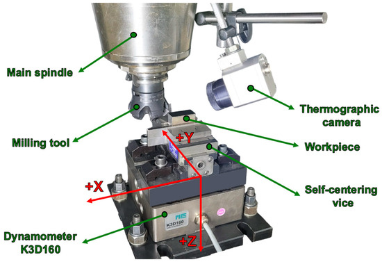 Temperature measurement in milling processes is frequently performed using thermographic techniques or thermocouples. The thermographic technique allows the determination of the temperature at the cutting tool level [30,31,32] and the measurement of the maximum temperatures of the released chips [22,33]. Thermocouples are used to measure the temperatures in the contact areas between the tool and the part [24,34]. The variation in the values of the cutting regime parameters has an important influence on the process temperatures. Liu et al. [35] showed that in hard metal milling processes, the process temperatures vary with the variation in the cutting width and the tooth feed, even if the other parameters are kept constant. Cheng et al. [36] measured temperatures in the milling process of a low-machinability material with thermocouples and concluded that the cutting speed has the most significant influence on the process temperature.