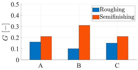 Similarly, increasing the uncut chip width lc—as in the case of roughing (when ap = 2 mm and lc = 2828 mm) compared to semi-finishing (when ap = 1 mm and lc = 1414 mm)—intensifies the mechanical deformation in the area of shearing of the processed material, producing a greater amount of heat.