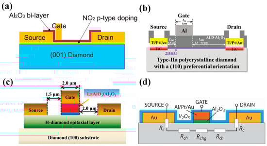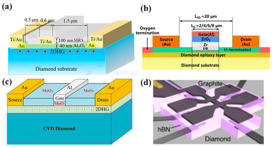 - Liu, J.W.; Liao, M.Y.; Imura, M.; Koide, Y. Normally-off HfO2-gated diamond field effect transistors. Appl. Phys. Lett. 2013, 103, 092905. [Google Scholar] [CrossRef]