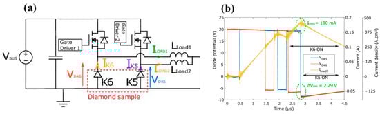 - Perez, G.; Letellier, J.; Maréchal, A.; Eon, D.; Chicot, G.; Jeannin, P.O.; Rouger, N.; Schanen, J.L. Diamond Schottky barrier diodes for power electronics applications. In Proceedings of the 2018 IEEE Energy Conversion Congress and Exposition (ECCE), Portland, OR, USA, 23–27 September 2018; pp. 1956–1963. [Google Scholar] [CrossRef]