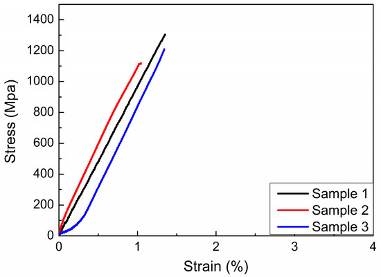 For general titanium alloys, β-annealing treatment can change the solid solubility of certain phases to improve the strength of materials [18]. Figure 3 shows the tensile curve for samples that have undergone different β-annealing treatments (870 °C/8 h, 880 °C/8 h, 890 °C/8 h, See Table 1). The tensile strength of all three samples exceeded 1100 MPa, but brittle fractures occurred before reaching the yield stage. Figure 4 shows the fracture morphology and local magnified image of the β-annealed sample. It can be seen that the fracture surface exhibits brittle cleavage fracture, with local smoothness and the appearance of grain-shaped crystal planes. This indicates that the tensile process will suddenly undergo brittle fracturing without yield strength, and the shrinkage of the fracture surface can be ignored.