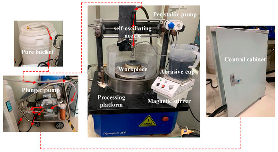 - Zhang, H.; Tao, B.; Deng, Q.; Zhang, C.; Lyu, B.; Nguyen, D.-N. Research on Abrasive Water Jet Polishing of Silicon Carbide Based on Fluid Self-Excited Oscillation Pulse Characteristics. Micromachines 2023, 14, 852. [Google Scholar] [CrossRef]