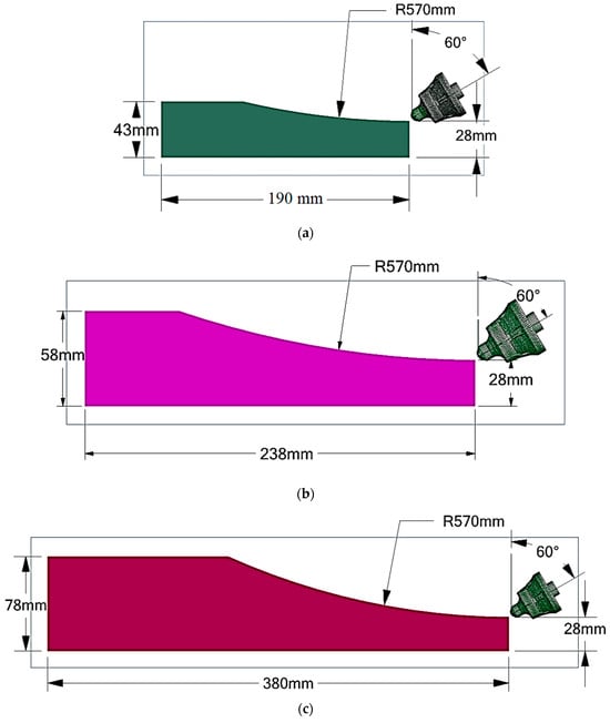 Space Claim model corresponding to different milling depths: (a) ap = 15 mm; (b) ap = 30 mm; (c) ap = 50 mm.