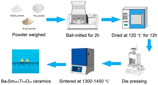 - Xu, Y.; Huang, G.; He, Y. Sol-gel preparation of Ba6−3xSm8+2xTi18O54 microwave dielectric ceramics. Ceram. Int. 2005, 31, 21–25. [Google Scholar] [CrossRef]