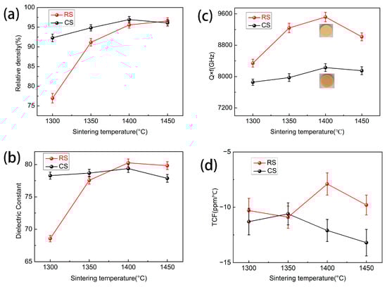 - Xiong, Z.; Yang, C.; Tang, B.; Fang, Z.; Chen, H.; Zhang, S. Structure-property relationships of perovskite-structured Ca0.61Nd0.26Ti1−x(Cr0.5Nb0.5)xO3 ceramics. Ceram. Int. 2018, 44, 7384–7392. [Google Scholar] [CrossRef]