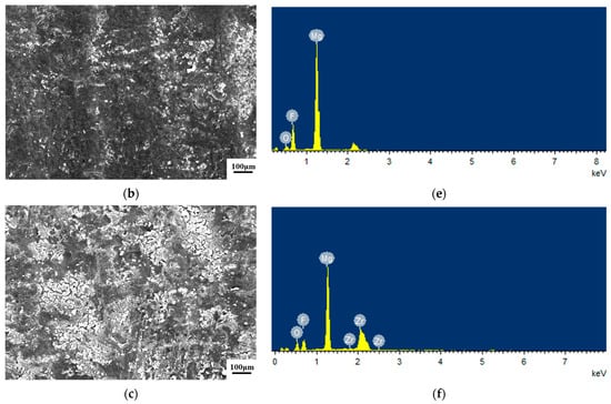 Scanning electron microscopy images and energy-dispersive X-ray images of Mg-Zn-Y-Nd alloy (a,d), fluorinated coatings (b,e), duplex MgF2/ZrO2 coatings (c,f).