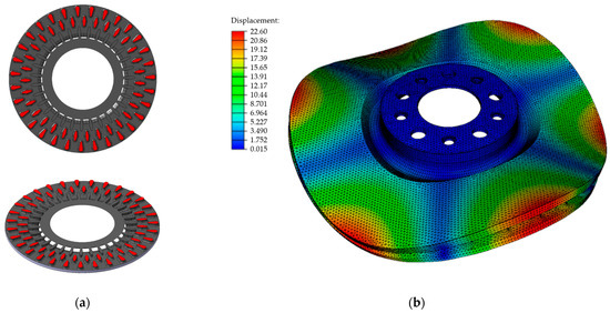 The design of braking system structures with NVH (Noise, Vibration, Harshness) prediction is based on the finite element method. The most frequently used methods for predicting and eliminating noise are transient dynamic analysis and complex eigenvalue analysis [29,31,32,33]. Based on numerical simulations, the frequency characteristics of the disc brake assembly are optimized, and the natural vibration range of its individual elements is determined. The general concept of designing the acoustic properties of the braking system as well as of the entire car is to bring various sound sources into a harmonious, well-balanced overall sound. Optimizing individual sources in itself does not automatically result in an ideal overall vehicle sound [34].