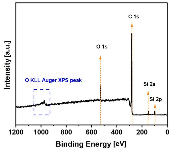 X-ray photoelectron spectroscopy (XPS) analyses were carried out in a PHI Versa Probe II Scanning XPS system (Lake Drive East, Chanhassen, MN, USA) using monochromatic Al Kα (1486.6 eV) X-rays that were focused on a 100 µm spot and scanned over an area of 400 µm × 400 µm. The photoelectron take-off angle was 45°, and the pass energy in the analyser was set to 117.50 eV (0.5 eV step) for the survey scans and 46.95 eV (0.1 eV step) to obtain high-resolution spectra of C 1s, O 1s, and Si 2p. A dual beam charge compensation with 7-eV Ar+ ions and 1-eV electrons was used to maintain a constant sample surface potential, regardless of the sample conductivity. All XPS spectra were charge-referenced to the unfunctionalised saturated carbon (C–C) C 1s peak at 285.0 eV. The operating pressure in the analytical chamber was less than 3 × 10−9 mbar. The deconvolution of the spectra was carried out using PHI MultiPak software (v. 9.9.3). The spectrum background was subtracted using the Shirley method [27].