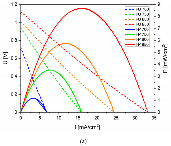 Figure 17c shows the U–I and P–I dependencies of the DC-SOFC supplied by the CMK-850 biochar sample.