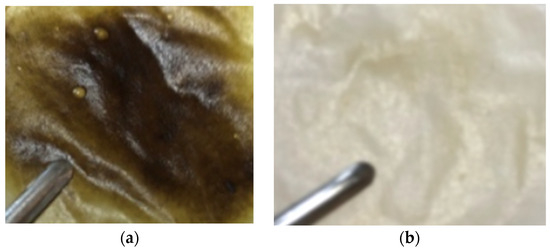 The results obtained in this study on the antibacterial effects (Figure 6a–f) showed that the best results are obtained in the case of S. aureus (microorganism G+) when inhibition diameters of 50 mm are obtained in the case of using disks impregnated with a solution containing 5 mg minocycline/mL and diameters of 29 mm are obtained in the case of membranes with minocycline (Figure 6a,e,f).