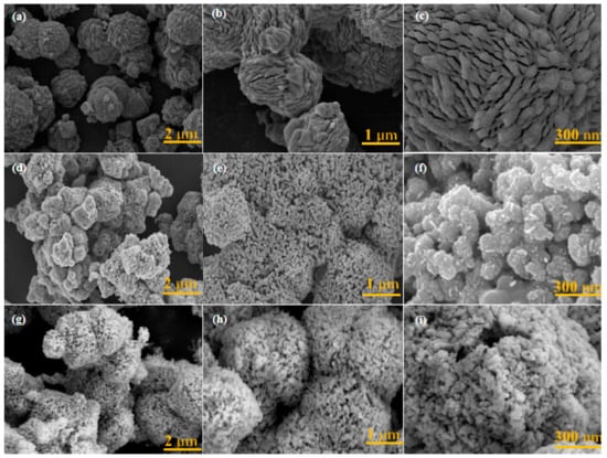 Typical SEM images of (a–c) Co-MFF, (d–f) CoN/Co4N@C, and (g–i) Co4N/CoN@C-P.
