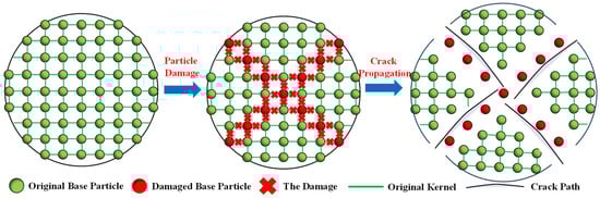 The determination of the fracture criterion is the prerequisite for accurately simulating material failure. In this section, the widely used maximum tensile stress criterion is utilized. When the tensile stress of the particle reaches this tensile strength, then the particle is damaged. The expression of this criterion can be expressed as:
