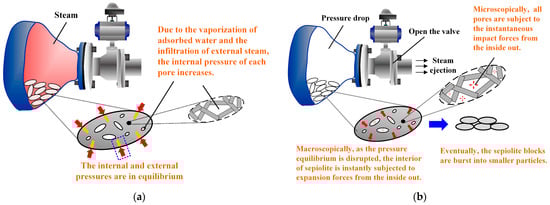 The principle of preparing sepiolite powder using this method: (a) Steam injection. (b) Steam release.