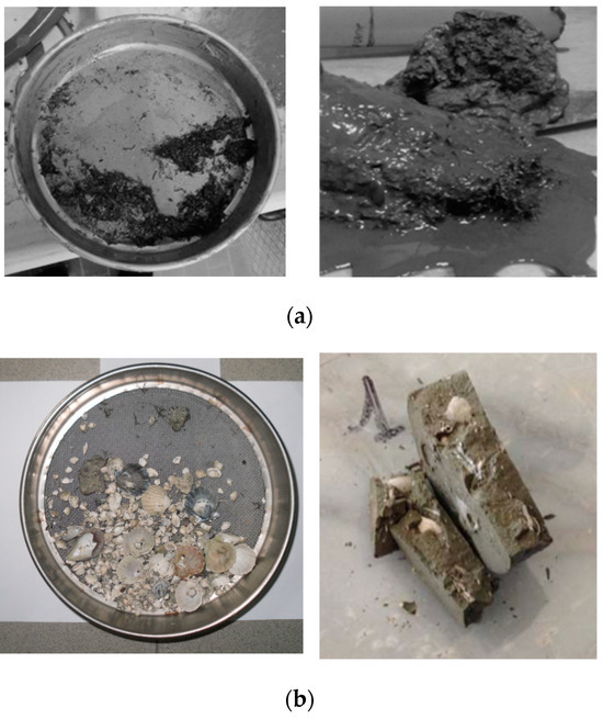 Sediments are natural geomaterials of high complexity (Figure 3 [3]). Such complexity stems from their heterogeneity in composition, which can vary from sandy soils and essentially clay materials to the presence of natural compounds (salinity in pore water, organic matter, diatoms, and fossils in the matrix). Moreover, when polluted, the presence of anthropogenic compounds (heavy metal ions and organic pollutants) in various concentrations can further affect their hydro-mechanical behavior, making their in situ chemo-mechanical stabilization particularly challenging. This is why there are not a lot of research contributions concerning cutting-edge options for their ex situ S/S treatments.