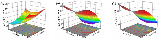 The 3D response surface plots described by the regression model reveals the effect of independent variables and the interaction of independent variables on the SRF. The dosages of OEMR3 in Figure 2a, OEMR1 in Figure 2b, and OEMR2 in Figure 2c were set as 3%, respectively.