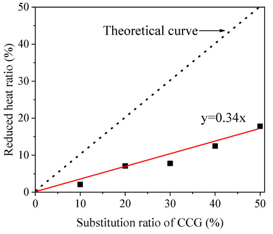 Correlation of the reduced heat ratio with the increased substitution ratio of CCG.