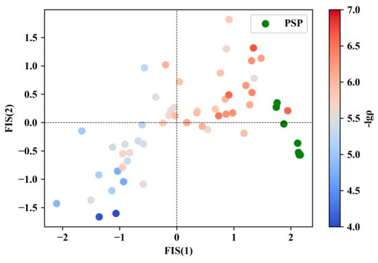 In this study, we employed the Fisher projection method to project the samples from high-dimensional space into two-dimensional space, where the sample projections were plotted by FIS(1) and FIS(2) derived from the linear combinations of the original features: