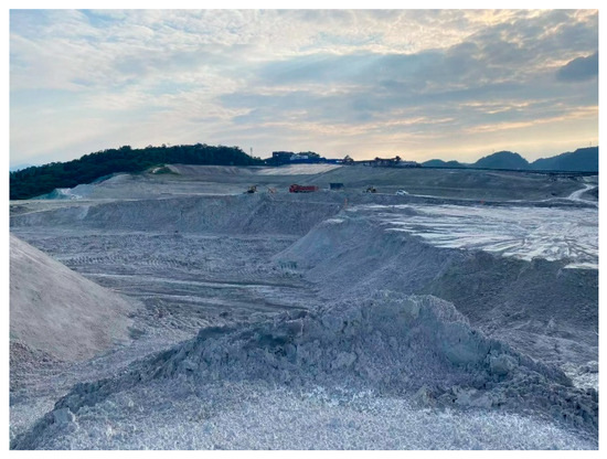 Phosphogypsum (PG) is a by-product from the production of phosphoric acid, usually in the form of calcium sulfate dihydrate [1], and small amounts of impurities, such as organic matter, fluoride, and acidic impurities [2,3]. Each production of 1 ton of phosphoric acid produces about 5 tons of PG; the global phosphate fertilizer industry PG annual production is about 200–300 million tons, of which about 25% originates in China [4,5,6].