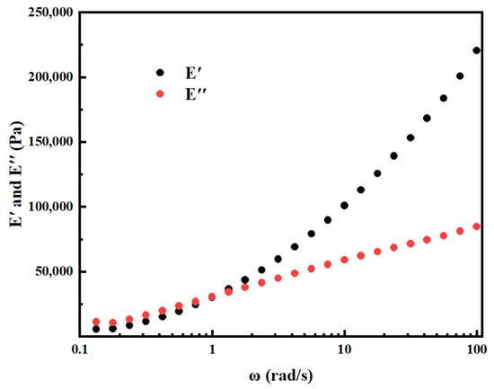 where ω is the angular frequency, G0 is the transient shear modulus, μ is the transient Poisson ratio, and N is the number of Maxwell series. The relaxation spectra of ABS in the range from 10−1 to 102 rad/s are shown in Figure 2.