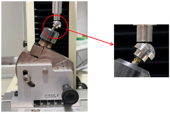 To corroborate the results obtained with the finite element analysis regarding the maximum load produced by the plastic deformation of the implant, an experimental physical analysis of the W-T-NC model was performed. The specific choice of this model was based on the fact that it is an existing abutment on the market (MEDPROTIBASE® abutment, Klockner Implant System, Madrid, Spain) and clinically used. The experiment was an adaptation of the ISO 14801 standard for static bending tests [19] (see Figure 4). The entire testing process was conducted at SOADCO S.L. facilities R&D&I laboratory (Escaldes Engordany, Andorra)