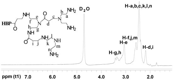 Fourier Transform Infrared Spectroscopy analysis was performed on the intermediate monomers of the AB3 and AB2 types, as well as on the HBP-NH2 and HBP-HTC samples, using an infrared spectrometer (FTIR; Thermo Nicolet iS50, Thermo Fisher Scientiffc, Waltham, MA, USA). Nuclear magnetic resonance measurements, including 1H-NMR and 13C-NMR, were conducted on the HBP-NH2 and HBP-HTC samples using an NMR spectrometer (NMR; Unity Ivova 300M, Ivova, Fairfax, VA, USA) [17,18].