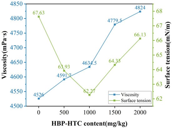 Viscosity and surface tension of spinning solution with different HBP-HTC content levels.