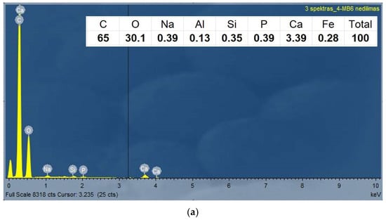 EDX analysis of the RMB sample was performed to clear possible changes in the material content during the friction and wear process at the sample testing. Figure 9 presents the elementary content of the surface material before and after the test.