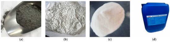 In this study, ordinary concretes with compressive strengths of 30, 50, and 70 MPa were used as the concrete substrate. The mix proportions are detailed in Table 4. The raw materials included water, cement, coarse aggregate (gravel), fine aggregate (river sand), and a water-reducing agent. The cement was 42.5R ordinary Portland cement. The coarse aggregate consisted of 5–10 mm granite gravel, and the fine aggregate was dried river sand. The water-reducing agent, produced by Guangdong Strong Building Materials Co., Ltd., mainly consisted of β-naphthalene sulfonate condensate, with a water reduction rate of approximately 15–20%. The compressive strength of the concrete substrate was measured using 150 mm cubic specimens, based on the national standard GB50081-2019 [38]. The results showed compressive strengths of 35.3 MPa for C30, 51.3 MPa for C50, and 70.6 MPa for C70.