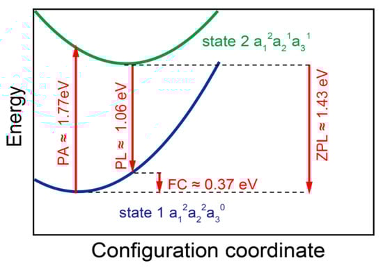 The radiative lifetime τ associated with ZPL could judge the SPE quality, which is given as 1/rij. The transition rate rij can be calculated by Fermi’s golden rule as: