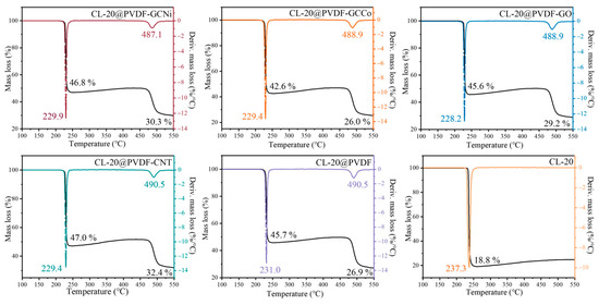 The following supporting information can be downloaded at: https://www.mdpi.com/article/10.3390/ma17153805/s1, Figure S1: TGA/DTG and DSC of PVDF at 10 K/min; Figure S2: TGA/DTG of CL-20@PVDF microspheres at 5, 10, 7.5, 15 K/min; Figure S3: TGA/DTG of CL-20@PVDF-CNT microspheres at 5, 10, 15, 20 K/min; Figure S4: TGA/DTG of CL-20@PVDF-GO microspheres at 5, 10, 15, 20 K/min; Figure S5 TGA/DTG of CL-20@PVDF-GCCo microspheres at 5, 10, 15, 20 K/min; Figure S6: TGA/DTG of CL-20@PVDF-GCNi microspheres at 5, 10, 15, 20 K/min; Figure S7: DSC of involved CL-20@PVDF microspheres at 5, 10, 15, 20 K/min; Figure S8: Flame propagation images of the combustion processes of involved CL-20@PVDF@B: (a) CL-20@PVDF@B; (b) CL-20@PVDF@B-CNTs; (c) CL-20@PVDF@B-GO; (d) CL-20@PVDF@B-GCCo; (e) CL-20@PVDF@B-GCNi. References [40,41,42,43,44,45,46] are cited in the supplementary materials.