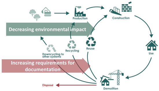 Today, buildings based on circular principles are niche and they are most often unique demonstration buildings [11,12]. To speed up the transition towards a CE, there is a strong need to bridge the gap from niche to “new normal”. The perception of stakeholders about building component reuse is affected by the potential risks associated with this intervention [7]. A key challenge in choosing the reuse of building components today is the barrier constituted by the lack of standards, certification, and documentation systems for these materials. Such a lack entails a significant documentation burden and economic risk for the building owner when choosing to reuse components [11]. This documentation barrier must be overcome by the development of systems and methods that ensure equality in the choice between reused and new components.
