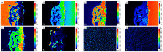 | O | 0.1 | 2.7 | 0.2 | 0.0 | 62.5 | 8.5 | 3.5 | 21.8 | ZrO2 alloyed with Ti/Cu |