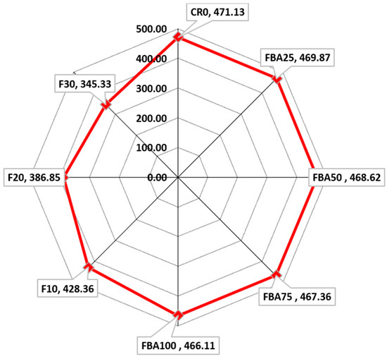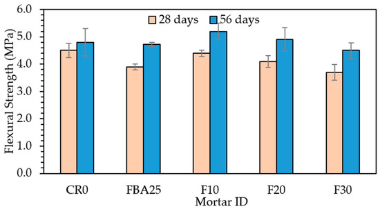 Flexural strength of the designed FBA-based mortars.