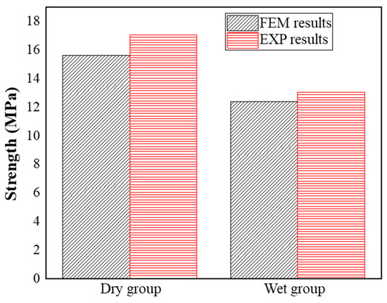 - The predicted results of the failure loads of the DLSJs under tensile loading for the dry and wet groups obtained using FEM had errors of -8.5% and 5.0%, respectively, compared with the results of the tests. The damage evolution obtained through FEM also showed good consistency with EXP.