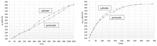 | the aggregated heat transfer coefficient of the cylindrical specimen at 1045 °C (427.5 W/m2 °C) | |