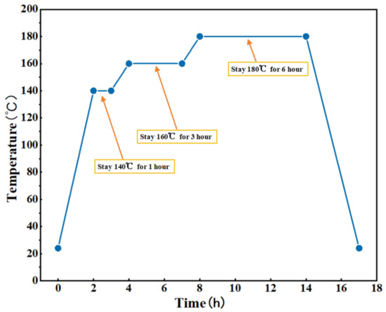 After hot pressing, a heat treatment oven (JF980S, Wangda, Changchun, China) is used to heat treat the pressed product to eliminate residual stress and thermal stress. The heat treatment process is shown in Figure 2.
