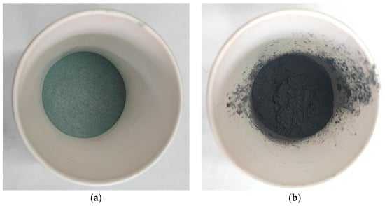 The SiC used in this study is high-purity silicon carbide powder produced by Nangong Yingtai Metal Materials Co., Ltd. (Xingtai, China). The SiC content in the silicon carbide powder is greater than 99%, and the appearance of the silicon carbide powder is shown in Figure 2a. The basic technical performance of SiC is evaluated according to the technical requirements for mineral powder, with the test results presented in Table 6.