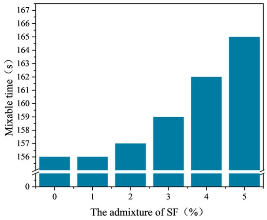 - Effect of SF Addition on Mixing Performance: The addition of SF affects the mixing performance of the emulsified asphalt mixture. As the SF content increases, the mixing time and viscosity of the emulsified asphalt mixture also increase. The optimal dosage range of SF, obtained through mixing performance tests, is 0% to 4%.