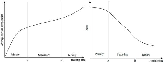 Heat Accumulation Stage: The temperature rise rate () is high, but the mass decrease rate () is low.