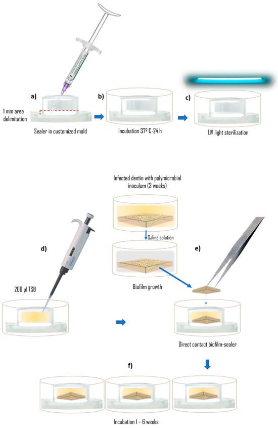 - Jerez-Olate, C.; Araya, N.; Alcántara, R.; Luengo, L.; Bello-Toledo, H.; González-Rocha, G.; Sánchez-Sanhueza, G. In vitro antibacterial activity of endodontic bioceramic materials against dual and multispecies aerobic-anaerobic biofilm models. Aust. Endod. J. 2022, 48, 465–472. [Google Scholar] [CrossRef] [PubMed]