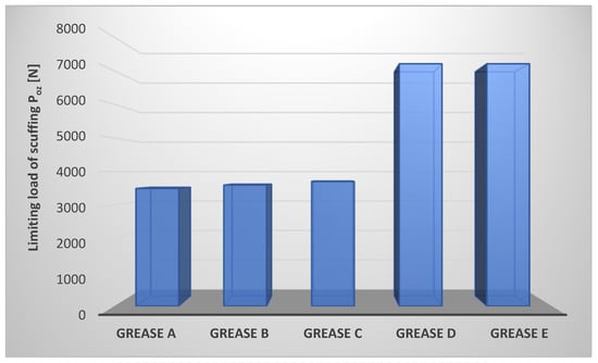 The limiting load of scuffing of the tribosystem lubricated with the tested lubricating compositions was also determined. The results are shown in Figure 4.