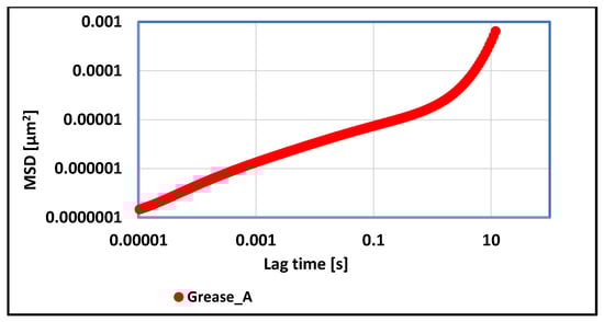 The dependence of the value of the MSD correlation function on time for a lubricating composition based on rapeseed oil and thickened with lithium stearate.