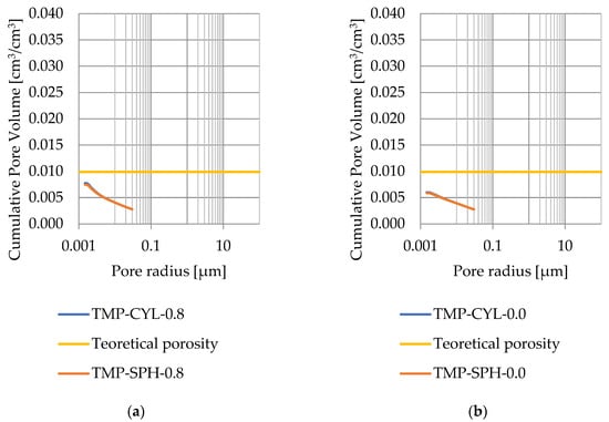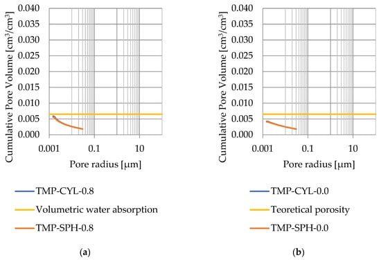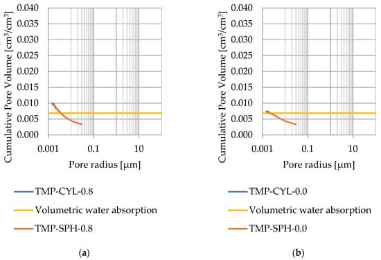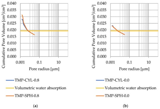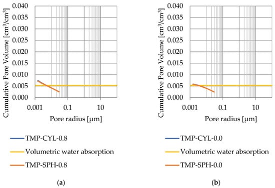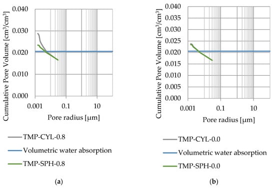 In order to determine sample volumetric absorption in DSC tests, the sample volumes Vsample were calculated using apparent density ρ0 based on the MIP test according to Equation (15) and water volume Vl (16). The volumetric absorption nv was calculated based on Equation (17).