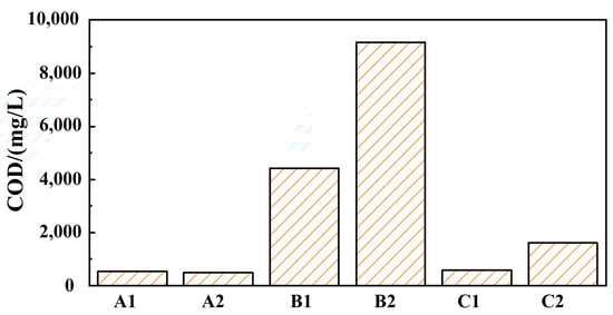The COD values of different solutions (A1, A2, B1, B2, C1, C2).