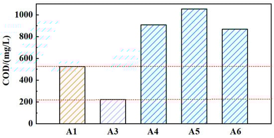 The COD values of different solutions (A1, A3, A4, A5, A6).